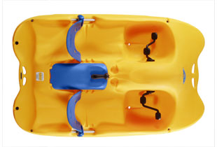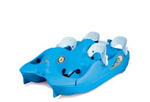 Future Beach's line of self-bailing pedal boats has set a new industry standard for quality and performance. Children and adults will enjoy a fastand comfortable ride as they explore nature's beautiful lakes, rivers, and oceans. Water Bee pedal boats are made from rotational-molded, high-density polyethylene. Each hull is uni-molded: no seams means no leaks. Since polyethylene is a high-density plastic, the hull of the Water Bee is much more durable than most conventional pedal boats. While other pedal boats lose their color and form due to years of exposure to the sun and to salt water, the polyethylene hull of the Water Bee pedal boat is 100 % UV-stable, and 100% salt-water resistant.
