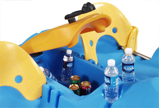 The Water Bee™ 202 deluxe pedal boat is self-bailing, attractive, rugged and feature rich. Features include a self-draining storage compartment to keep your snacks cool and an optional bimini top offers protection from the sun. Our commercial WB202 has a durable aluminum tiller and accommodates 2-5 persons.